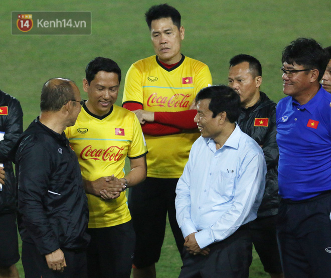 Trong buổi tập cuối cùng của đội tuyển Việt Nam vào chiều 4/11, Bộ trưởng Bộ VH-TT-DL Nguyễn Ngọc Thiện đã đến thăm và động viên toàn đội trước giờ lên đường.