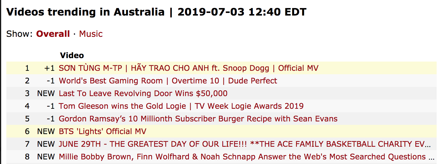Sau Hàn Quốc, Sơn Tùng và "Hãy trao cho anh" thống trị luôn cả top trending nước Úc