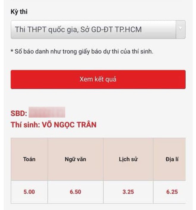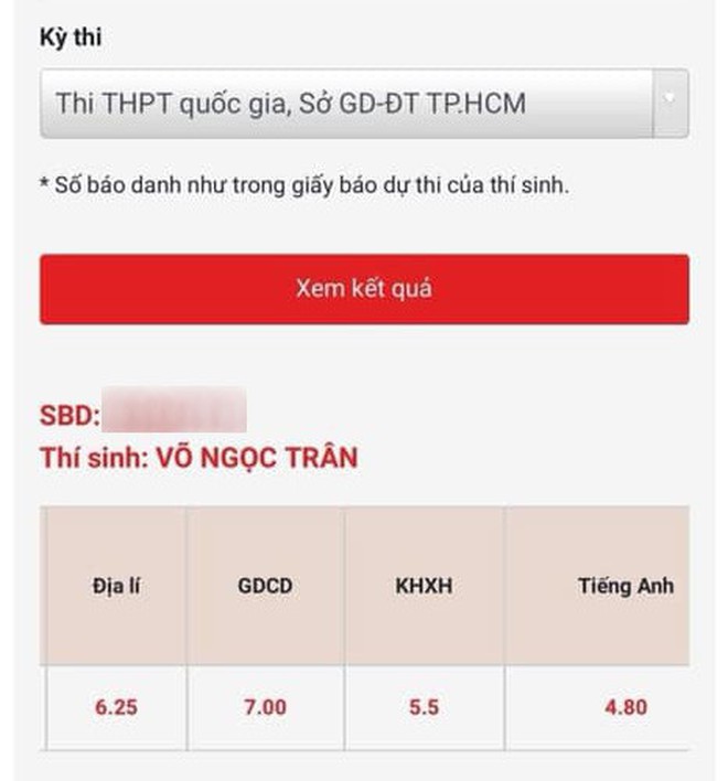 Theo những con số được ghi lại, có thể thấy cả 6 môn thi được Võ Ngọc Trân tuyển lựa dự thi năm nay đều đạt kết quả khá khiêm tốn. Cụ thể, điểm Toán của cô nàng là 5, điểm Văn là 6,5, điểm tiếng Anh là 4.8, điểm Lịch sử là 3.25, điểm Địa lý là 6.25 và điểm GDCD là 7. Trong đó, điểm thi môn Văn và môn tiếng Anh làm mọi người cảm thấy khó tin nhất.